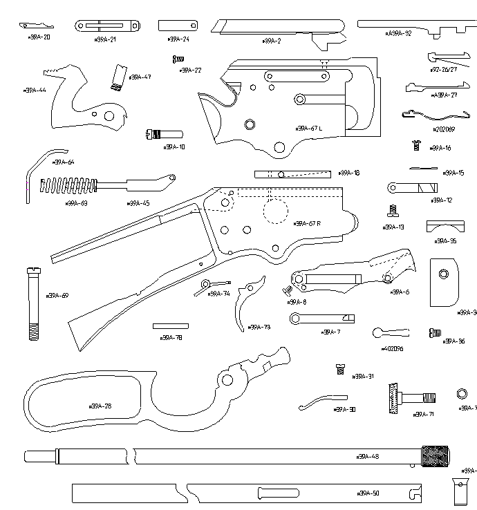 This model was the post-war improvement of all the previous versions of the 91, 92, 97, & 39 models. Some of the parts used are still common with the old 1891 parts, but may have a different part number. These CAD drawings are MY own & use the factory part numbers before they went to computerization.