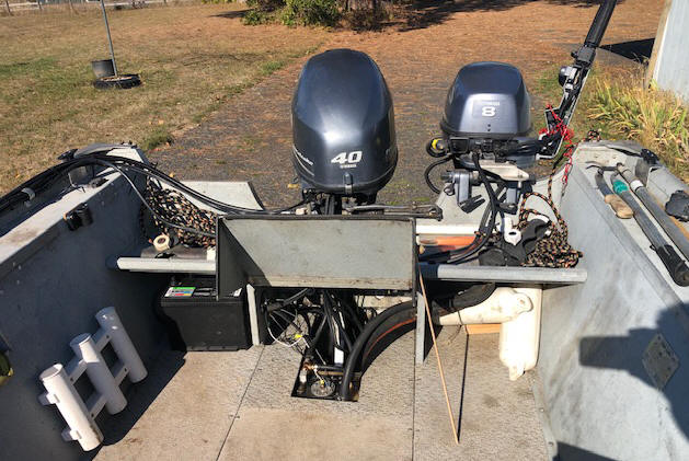 powered by a 2012 40hp Yamaha and a T series (high thrust) 8hp Yamaha 4 stroke