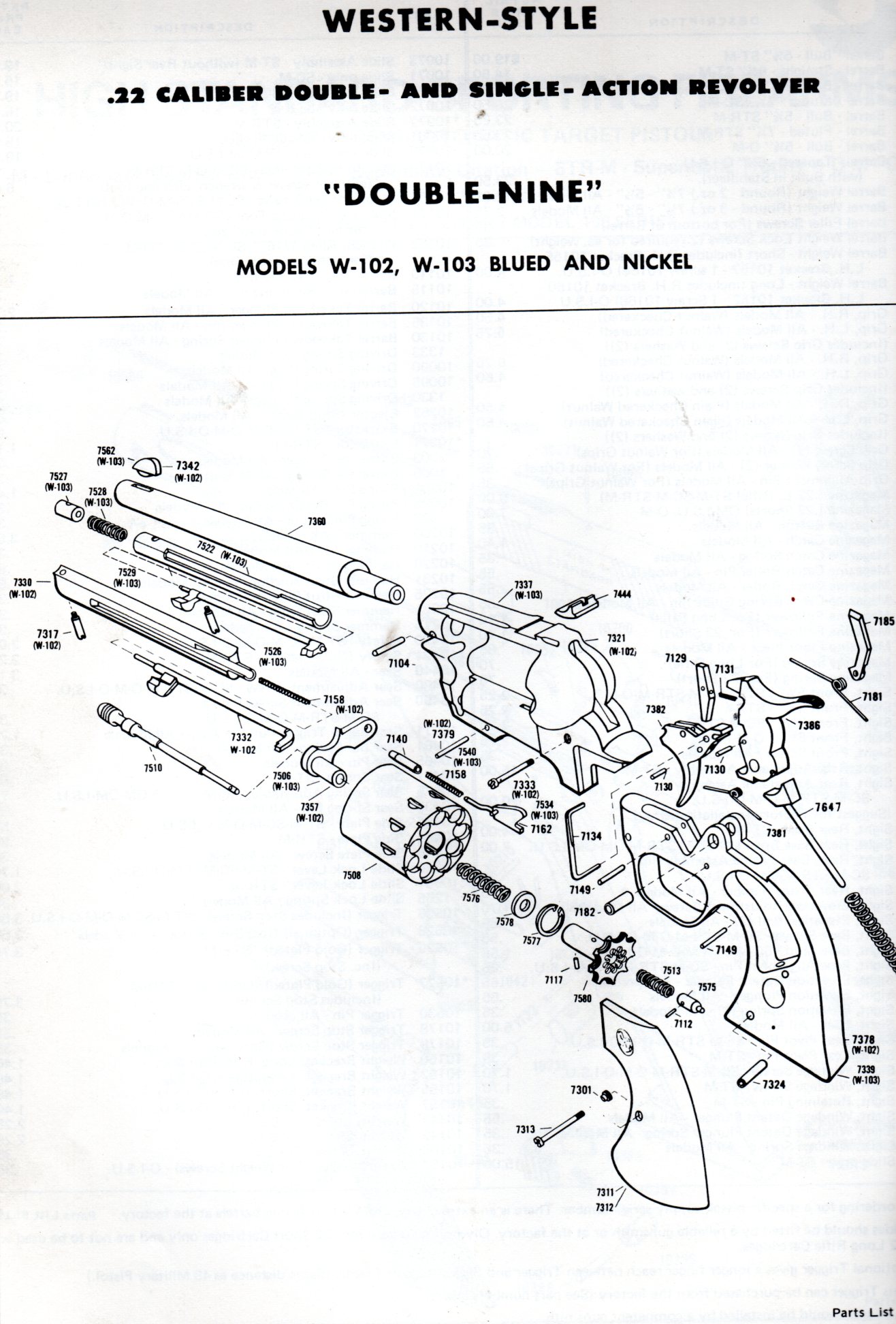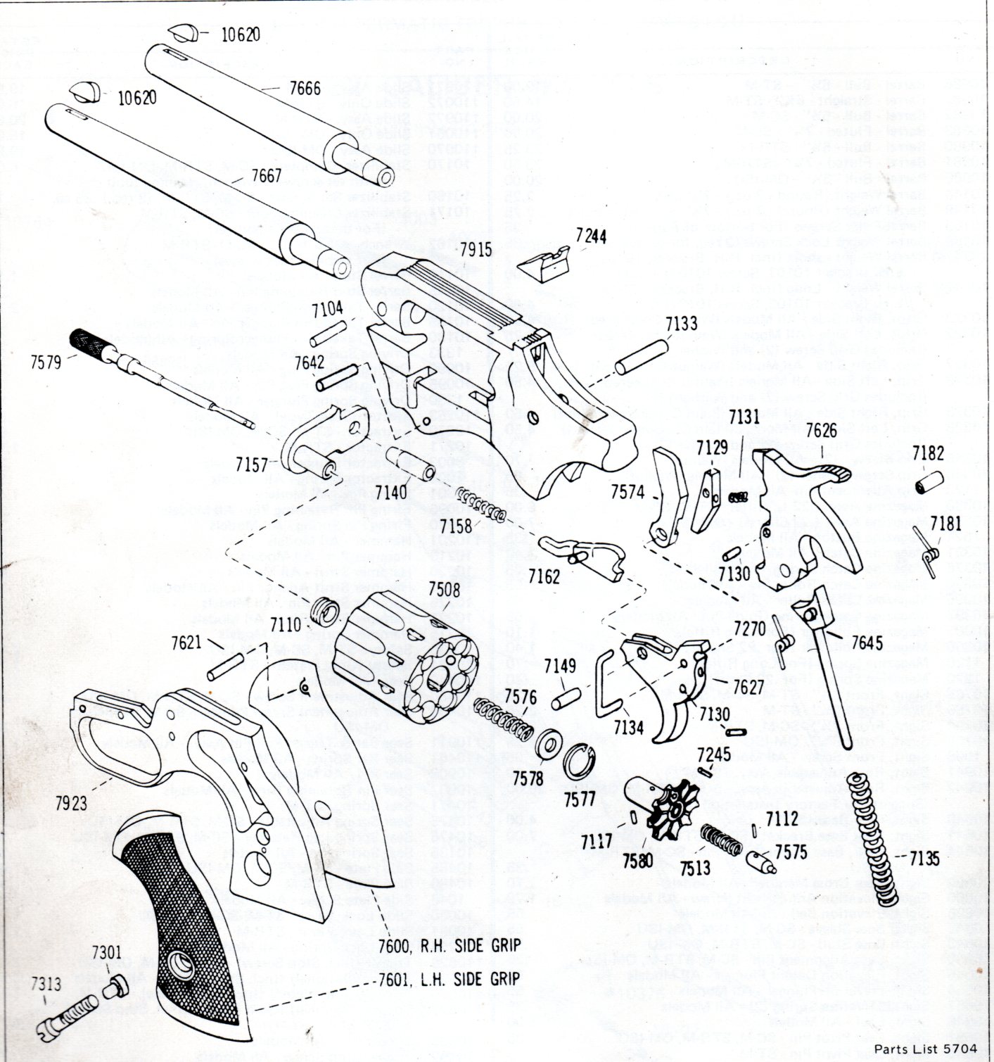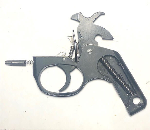 As a note, the Sentinel shown here is the R-100, (1st and only year of production). The later versions 1956 (R-101) had two changes. And these carried through on all later models/versions. The hammer pivot now has a sleeve or hollow bushing as a hammer pivot which makes for a lot easier pre test and final assembly (no slave pin and not under pressure). And they eliminated the coil spring trigger spring and plunger, replacing it with a wire Vee type pinned in place one on the rear of the trigger.